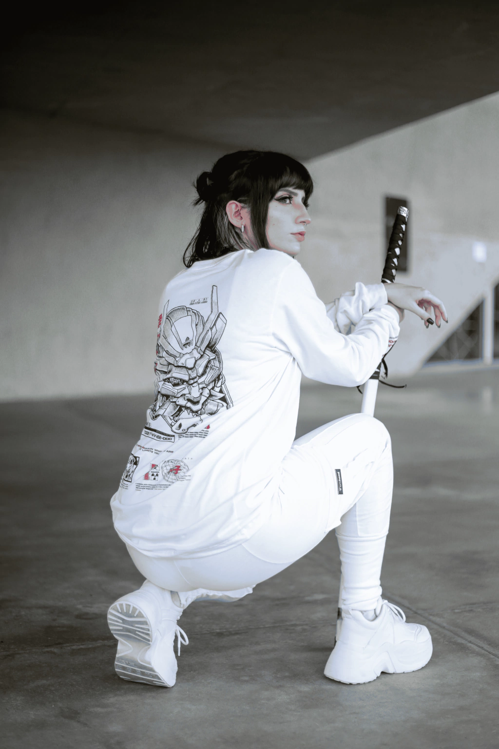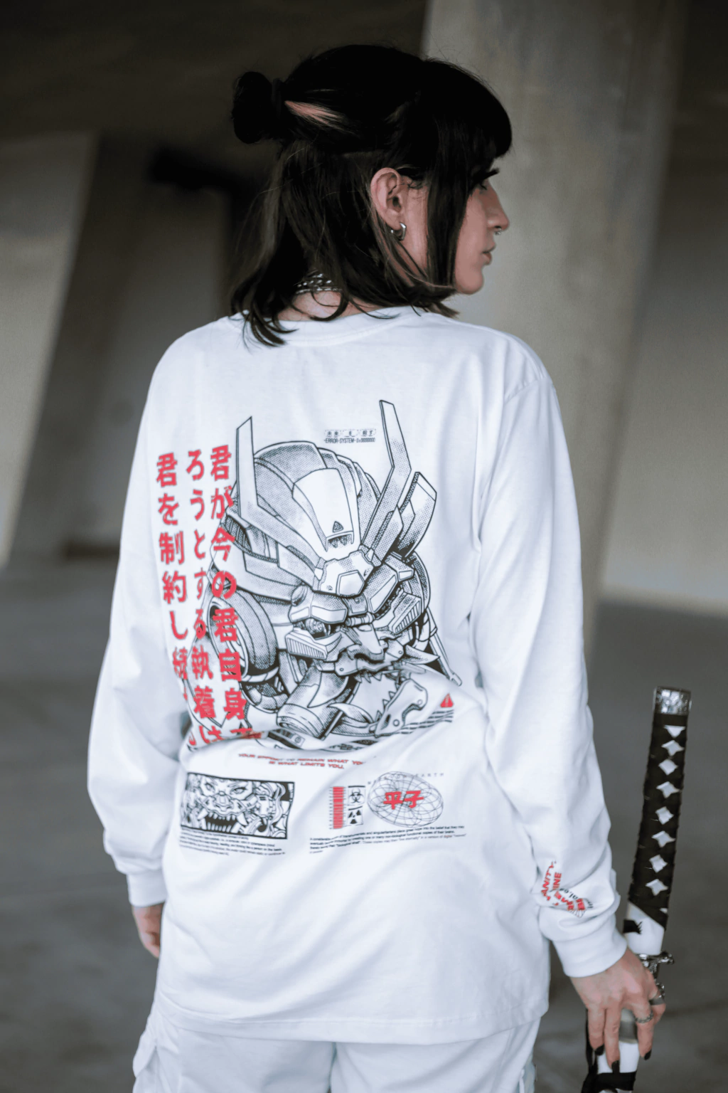 O Mecha Samurai, estampado em full color nas costas, simboliza a fusão entre tradição e futuro, humano e máquina. É um lembrete de que o amanhã pode não ser de carne e osso, mas de código e memória.